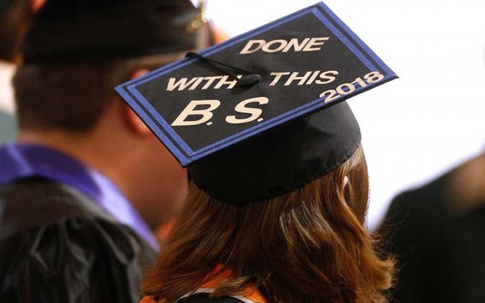 | Cận cảnh chiếc mũ tốt nghiệp của học sinh trường Trung học Alvin, Texas, Mỹ. (Nguồn: Reuters) |