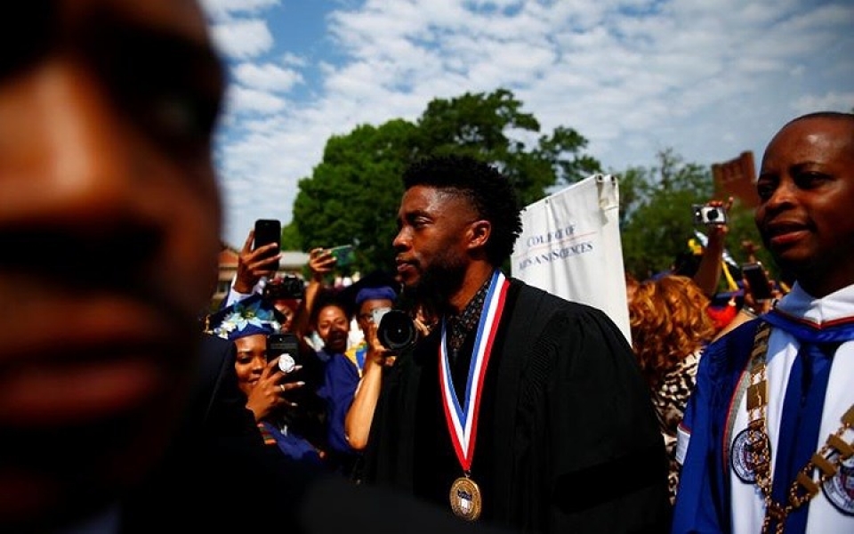 | Diễn viên Chadwick Boseman trong lễ phát bằng lần thứ 150 tại Đại học Howard, Washington, Mỹ. (Nguồn: Reuters) |