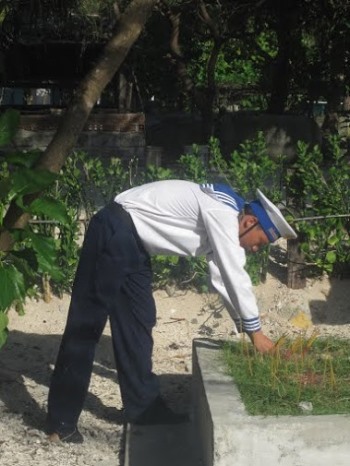 Bên cạnh việc luyện tập, sẵn sàng chiến đấu, các chiến sĩ đang đóng quân trên quần đảo Trường Sa còn chăm sóc mộ phần những đồng đội đã hy sinh trong quá trình thực hiện nhiệm vụ.