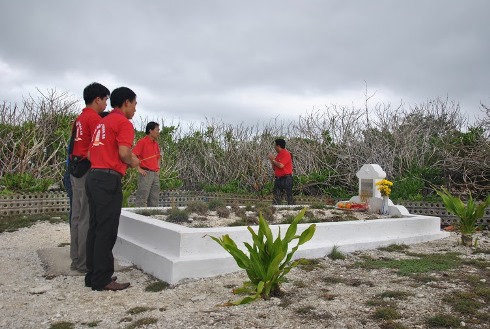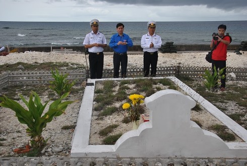 Bất kỳ đoàn công tác nào từ đất liền ra thăm đảo đều đến kính cẩn nghiêng mình, thắp hương viếng các liệt sĩ đã yên nghỉ trên quần đảo thiêng liêng của Tổ quốc.