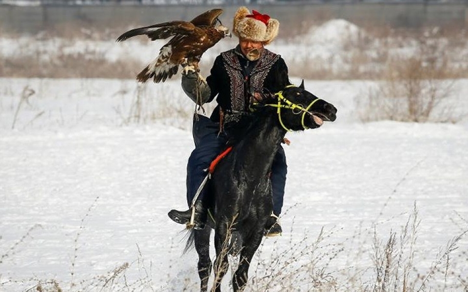 | Rong ruổi trên lưng ngựa và đi săn cùng đại bàng khắp vùng núi Altai là truyền thống hàng nghìn năm của người Kazakhstan. (Nguồn: Reuters) |