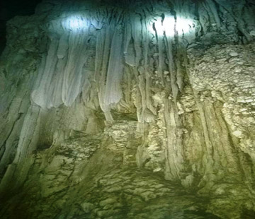 | Thạch nhũ trong hang động vừa được phát hiện. (Ảnh: Nguyễn Văn Ninh) |