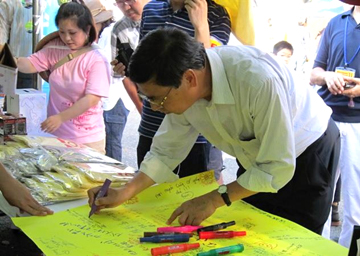 | Đại sứ Nguyễn Phú Bình viết thư động viên các nạn nhân thảm họa động đất, sóng thần ở Nhật Bản, tháng 3/2011. |