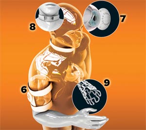 Stent (ống kim loại) mở động mạch để nong động mạch bị hẹp hay tắc nghẽn. Nhưng với các stent sinh học phiên bản mới do Phòng Thí nghiệm Abbott ở Illinois chế tạo, lại có thể nuốt qua đường miệng. Stent sinh học này phân phát thuốc giữ cho động mạch khỏi hẹp trở lại. Sau 6 tháng, stent bắt đầu phân hủy và sau 2 năm thì biến mất hoàn toàn, để lại đằng sau một động mạch khỏe mạnh.
