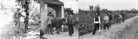 | Việt Nam qua ống kính của Burchett (từ trái qua): Quân dân trong kháng chiến chống Pháp, Niềm vui hòa bình lập lại, Chống chiến tranh phá hoại. |