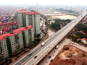 | Đường cầu cạn Pháp Vân-Linh Đàm. (Ảnh minh họa: TTXVN) |