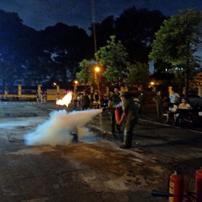 Sau phần tập huấn về lý thuyết, cán bộ Phòng Cảnh sát PCCC & CNCH đã được hướng dẫn các nguyên lý cấu tạo, phạm vi sử dụng, cách sử dụng, kiểm tra, bảo quản, bảo dưỡng phương tiện chữa cháy, bình cháy, bình bọt chữa cháy xách tay, bình bọt chữa cháy xe đẩy, bình khí C02; thực hành việc sử dụng bình chữa cháy để dập tắt đám cháy như hướng dẫn về hệ thống báo cháy tự động, hệ thống báo cháy và chữa cháy trong nhà..; thực hành các phương tiện thiết bị cứu nạn, cứu hộ. Kết thúc hai buổi học, các học viên đã làm bài kiểm tra và nhận kết quả.