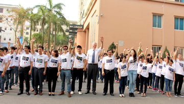 Các đại sứ Chiến dịch Giờ Trái đất 2015 á hậu Thụy Vân, ca sỹ Đinh Mạnh Ninh , ca sỹ - nhạc sỹ Tạ Quang Thắng và Đại sứ Đan Mạch tại Việt Nam John Nielsen đã giao lưu cùng hơn 3.000 sinh viên ĐH Công nghiệp.