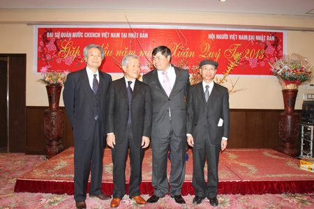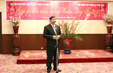 Tối 17/2/2013 như một ngày hội lớn tại Đại sứ quán Việt Nam tại Nhật Bản với khẩu hiệu chào xuân mới, đèn hoa lấp lánh, tiếng ca hát và tiếng nói cười rộn rã. Đó là buổi Gặp gỡ đầu năm, mừng xuân Quý Tỵ cho cộng đồng người Việt đang sinh sống, học tập và làm việc tại xứ sở hoa anh đào do Đại sứ quán Việt Nam tại Nhật Bản phối hợp với Hội người Việt Nam tại Nhật Bản tổ chức. Các năm trước, chiêu đãi đối ngoại đã trở thành thông lệ nhân dịp Tết cổ truyền của dân tộc tại Đại sứ quán, nhưng chỉ có đại diện một số bà con kiều bào được mời đến dự cùng khách nước ngoài là chính khách, quan chức, bạn bè Nhật Bản và ngoại giao đoàn.