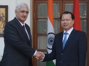 | Ngoại trưởng Ấn Độ Salman Khurshid tiếp Phó Thủ tướng Việt Nam Vũ Văn Ninh tháng 1/2013 |