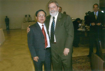 | Tác giả chụp cùng Tổng thống Lula trong bữa tiệc Quốc yến bằng hình thức buffet chào mừng Tổng Bí thư Nông Đức Mạnh sang thăm Brazil tháng 5/2008. |