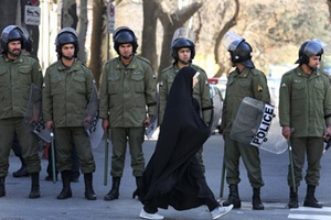 | Cảnh sát Iran bảo vệ đại sứ quán Bahrain ở Tehran ngày 17/3. |