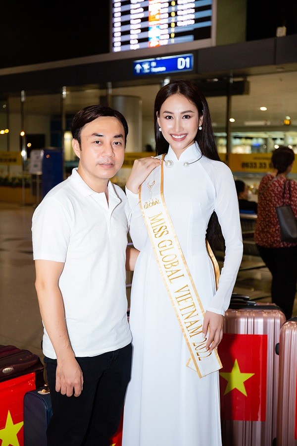 | Nhà thiết kế Tommy Nguyễn cũng ra sân bay để động viên Đoàn Hồng Trang trước giờ lên đường. |