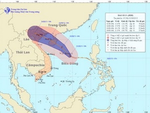 Vị trí và đường đi của cơn bão. (Nguồn: Trung tâm Dự báo Khí tượng Thủy văn Trung ương)