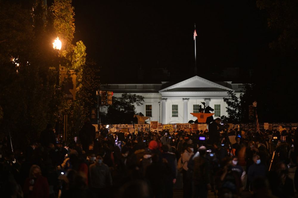 | Tại trung tâm thủ đô Washington, những người biểu tình đã thể hiện nỗi lo lắng cùng sự tức giận trước lời tuyên bố đầy ngạo nghễ của ông Trump. Trước đó, ông Trump đã phát biểu tại Nhà Trắng và khẳng định mình đã giành chiến thắng trong cuộc bầu cử năm nay, mặc cho còn nhiều bang chưa hoàn thành quá trình kiểm phiếu. (Nguồn: Washington Post) |