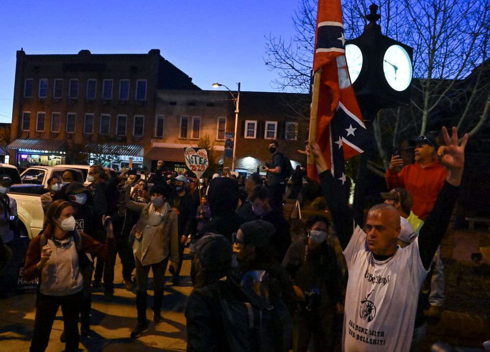 | Những người tuần hành trong Cuộc biểu tình thăm dò do Linh mục Greg Drumwright dẫn đầu, đã tổ chức một cuộc biểu tình tại Tòa án Lịch sử Hạt Alamance ở Graham, Bắc Carolina. (Nguồn: Washington Post) |