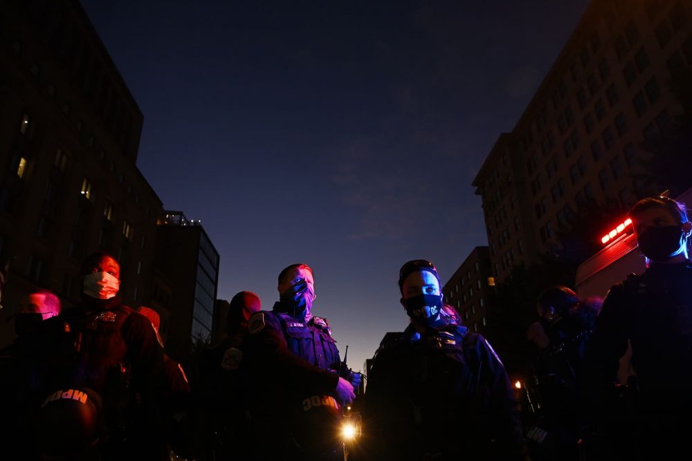 | Các sĩ quan cảnh sát tại thủ đô Washington D.C. đứng thành hàng để đảm bảo an ninh và sẵn sàng ứng phó cho những tình huống xấu có thể xảy ra. (Nguồn: Washington Post) |
