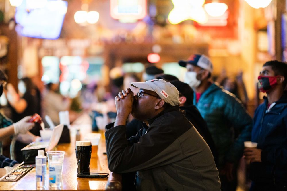 | Những người dân ủng hộ đảng Dân chủ theo dõi kết qủa sát nút của hai ứng viên tại một quán bar ở thành phố Atlanta.(Nguồn: Washington Post) |
