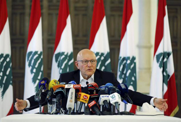 | Thủ tướng Lebanon phát biểu trước báo giới ở Beirut, ngày 23/8. (Nguồn: Reuters) |