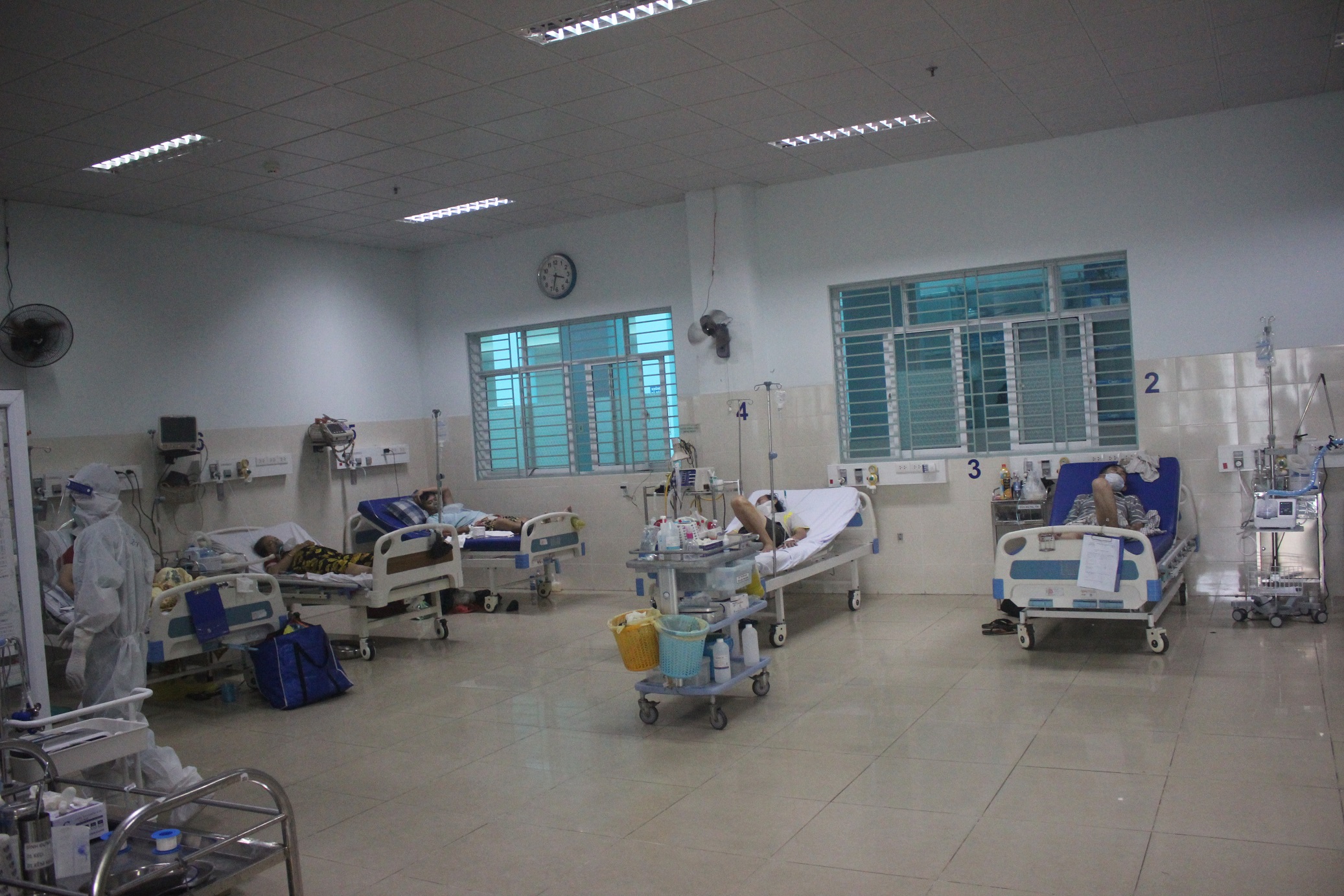 | Nhân viên y tế trao đổi khi theo dõi một ca Covid-19 ở phòng cấp cứu tại Bệnh viện dã chiến thu dung số 6 nơi thu dung hơn 4.000 ca F0 không triệu chứng hoặc triệu chứng nhẹ được phát hiện, sàng lọc đưa đến điều trị.. |