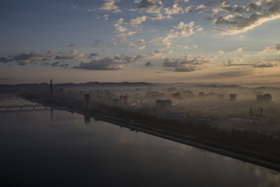 | Thủ đô Bình Nhưỡng và con sông Taedong buổi bình minh. Bức ảnh được chụp tại khách sạn Yanggakdo, tọa lạc ở giữa con sông. (Nguồn: NPR) |
