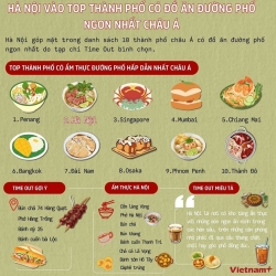 | Hà Nội vào top thành phố có đồ ăn đường phố ngon nhất châu Á Hà Nội góp mặt trong danh sách 10 thành phố châu Á có đồ ăn đường phố ngon nhất do tạp chí Time Out bình ... |
