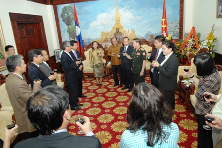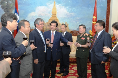 | Thứ trưởng Ngoại giao Phạm Quang Vinh chúc tết Đại sứ đặc mệnh toàn quyền Lào tại Việt Nam. |