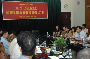 Trong không khí thắm tình đồng chí, đồng đội, đại diện Vụ Tổ chức Cán bộ đã đọc thư của Bộ trưởng Phạm Bình Minh (Bộ trưởng đang đi công tác ở nước ngoài) gửi các đồng chí thương binh và các đồng chí thân nhân gia đình thương binh - liệt sĩ, trong đó có đoạn: “... Bộ Ngoại giao hết sức trân trọng và biết ơn những cống hiến, hy sinh quý báu của các đồng chí và gia đình vì nền độc lập, tự do, sự thống nhất và phồn vinh của Tổ quốc. Bộ Ngoại giao cũng đánh giá cao tinh thần vượt khó của bản thân các đồng chí thương binh, cũng như thân nhân và gia đình của các đồng chí thương binh, liệt sĩ để có những đóng góp thiết thực của các đồng chí cho ngành Ngoại giao trong những năm qua...”.