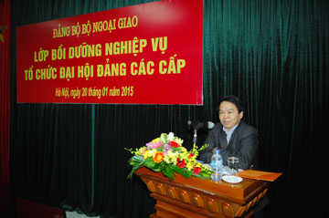 Phát biểu tại hội nghị, đồng chí Hồ Minh Tuấn, Phó Bí thư thường trực Đảng ủy Bộ Ngoại giao đã hoan nghênh tinh thần tham gia hội nghị của các đại biểu. Đồng chí Tuấn yêu cầu, đại diện các chi, đảng bộ cần nghiên cứu chặt chẽ các văn bản hướng dẫn của Đảng, xây dựng chi tiết kế hoạch tổ chức đại hội và tiến hành các công việc theo đúng yêu cầu nhằm tổ chức thành công đại hội chi, đảng bộ góp phần thực hiện thành công Đại hội các cấp tiến tới Đại hội Đại biểu lần thứ XII của Đảng./.