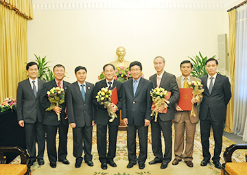 | Phó Thủ tướng, Bộ trưởng Ngoại giao Phạm Bình Minh và các Thứ trưởng chụp ảnh lưu niệm với các vị được bổ nhiệm. |