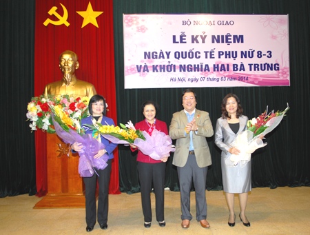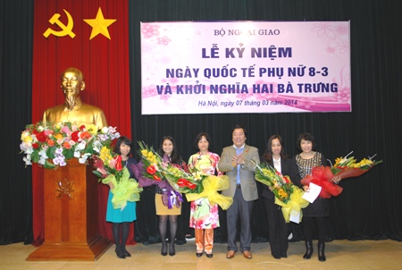 Tại buổi Lễ, thay mặt Ban Vì sự tiến bộ của phụ nữ và Ban Nữ công Bộ, bà Ngô Thị Hòa đã nêu bật những thành tích mà cán bộ nữ ngoại giao đã đạt được trong năm qua. Với tỷ lệ gần 41% trong tổng số cán bộ của Bộ, lực lượng cán bộ nữ đã có những đóng góp to lớn trong các hoạt động đối ngoại của Ngành. Sự tham gia của cán bộ nữ vào các vị trí quản lý, lãnh đạo tại các đơn vị được tăng cường. Trong năm qua, Bộ đã đề bạt được 01 Vụ trưởng nữ, 08 Phó Vụ trưởng, công nhận 02 thực tập cấp vụ, 21 Trưởng/ Phó phòng, 05 cán bộ được cử là Trưởng các cơ quan đại diện, 06 cán bộ nữ được phong hàm Đại sứ, 04 cán bộ nữ được phong hàm Công sứ... Bộ luôn tạo điều kiện tốt nhất cho cán bộ nữ được hưởng đầy đủ các chế độ theo quy định của Nhà nước, đồng thời tạo điều kiện cho cán bộ nữ tham gia các hoạt động thể dục, thể thao, khám sức khỏe định kỳ.