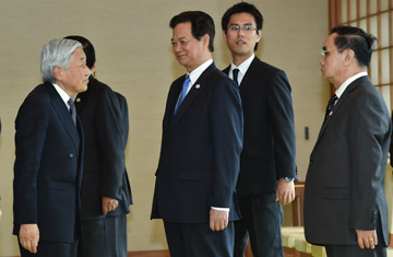 | Thủ tướng Nguyễn Tấn Dũng và lãnh đạo các nước Mekong đến chào Nhà Vua Nhật Bản Akihito. |