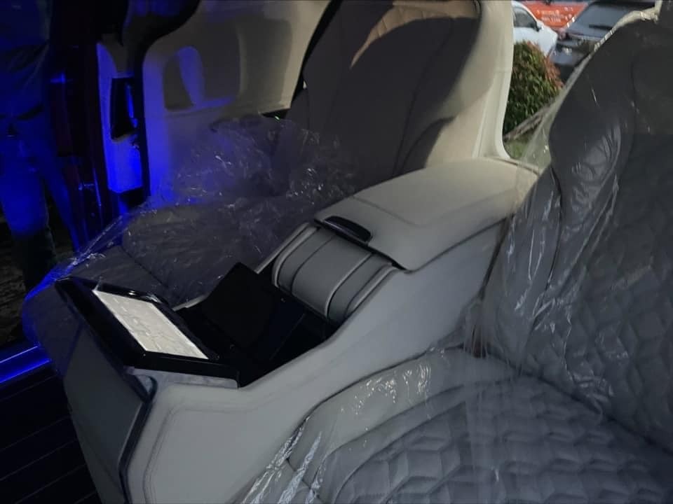 Trần xe bọc da Alcantrara kết hợp hiệu ứng LED bầu trời sao và sàn ốp gỗ tự nhiên. Rèm cửa và hệ thống điều hòa riêng đảm bảo người ngồi có được một không gian riêng tư và thoải mái.