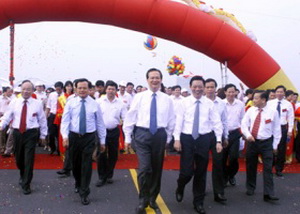 | Thủ tướng Nguyễn Tấn Dũng đến dự và cắt băng thông xe |