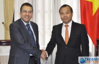 | Đại sứ Morocco chào xã giao Lãnh đạo Bộ Ngoại giao Ngày 5/12, Thứ trưởng Bộ Ngoại giao Vũ Hồng Nam có cuộc tiếp tân Đại sứ Morocco tại Việt Nam Azzeddine Farhane. |