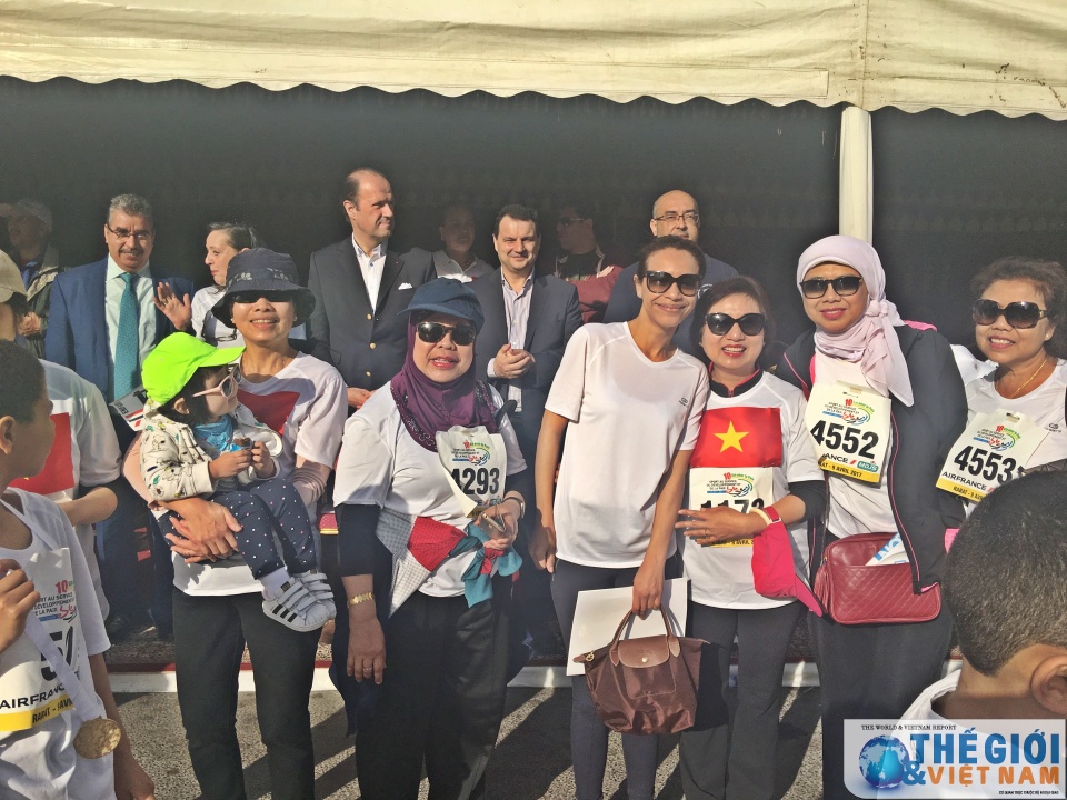 | Đại sứ Trần Quốc Thủy (thứ ba từ trái sang) cùng các cán bộ Đại sứ quán Việt Nam tại Morocco tham gia giải chạy. (Ảnh: Thu Trang) |