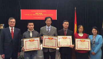 | Trao tặng Giấy khen của Đại sứ quán cho các tập thể và cá nhân. |