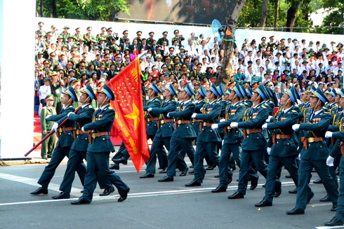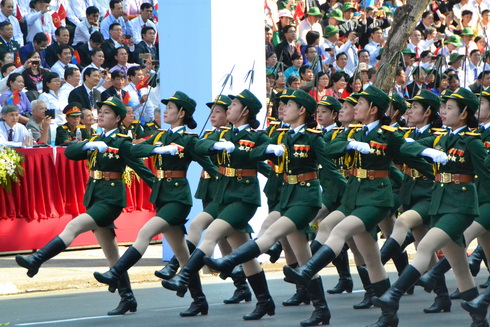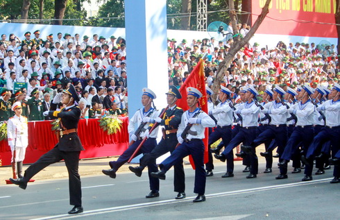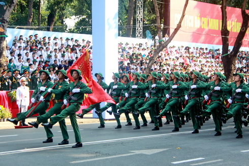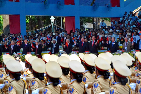 Các khối diễu hành luôn nhận được sự chào đón nồng nhiệt của các vị Lãnh đạo cấp cao, đại biểu và khách mời trên lễ đài. |