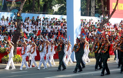 Kết thúc khối diễu binh, khối diễu hành là đoàn Mặt trận Tổ quốc Việt Nam, đoàn Cựu chiến binh, Công nhân, Nông dân, Trí thức - Doanh nhân... |