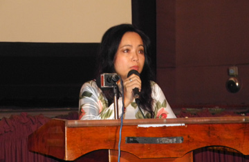 | Đại sứ Phan Kiều Thu phát biểu tại buổi chiếu phim. |