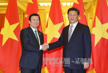 Chủ tịch nước Trương Tấn Sang khẳng định, trên cơ sở kiên trì đường lối đối ngoại hòa bình, độc lập, tự chủ, đa phương hóa, đa dạng hóa, Việt Nam trước sau như một, hết sức coi trọng phát triển quan hệ ổn định, lành mạnh và lâu dài với Đảng, Nhà nước và nhân dân Trung Quốc; mong muốn cùng Trung Quốc thúc đẩy quan hệ đối tác hợp tác chiến lược toàn diện Việt - Trung đi vào thực chất, hiệu quả; đặc biệt là cần tăng cường tin cậy chính trị; duy trì tiếp xúc cấp cao; đẩy mạnh giao lưu hữu nghị nhân dân, nhất là giữa thế hệ trẻ hai nước. Chủ tịch nước đề nghị hai bên cần quan tâm chỉ đạo, đôn đốc các cấp, các ngành thực hiện nghiêm túc các thỏa thuận và nhận thức chung đã đạt được giữa Lãnh đạo cấp cao hai Đảng, hai nước; ra sức thúc đẩy các lĩnh vực hợp tác tiến triển thực chất theo nguyên tắc tôn trọng lợi ích chính đáng của nhau, cân bằng, bình đẳng cùng có lợi, góp phần làm sâu sắc tình hữu nghị, hiểu biết và tin cậy lẫn nhau.