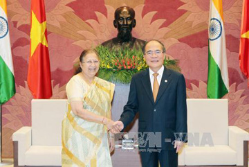 Bà Sumitra Mahajan cũng bày tỏ sự cảm phục đối với công cuộc đấu tranh giải phóng dân tộc, bảo vệ, xây dựng đất nước của nhân dân Việt Nam; khẳng định mong muốn của Ấn Độ không ngừng thúc đẩy quan hệ hợp tác giữa hai nước trong thời gian tới.