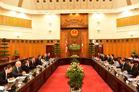 Trong khuôn khổ chuyến thăm, Thủ tướng David Cameron đã hội đàm với Thủ tướng Nguyễn Tấn Dũng, hội kiến Tổng Bí thư Nguyễn Phú Trọng và Chủ tịch nước Trương Tấn Sang.