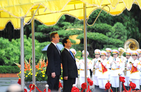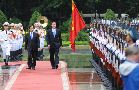| Thủ tướng Nguyễn Tấn Dũng và Thủ tướng Anh David Cameron duyệt đội danh dự. |