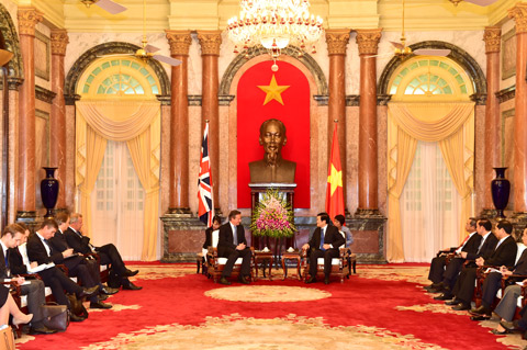 | Chủ tịch nước Trương Tấn Sang tiếp Thủ tướng Anh David Cameron. |