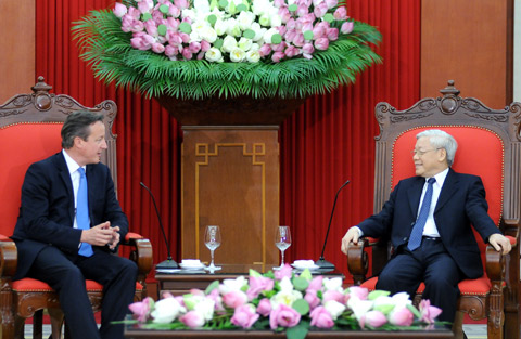 | Tổng Bí thư Nguyễn Phú Trọng tiếp Thủ tướng Anh David Cameron. |