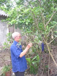 | Báu vật nhà của ông Quang là cây bưởi được lấy giống từ vườn Bác về. |