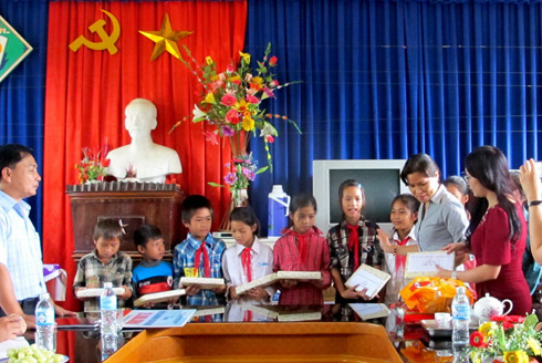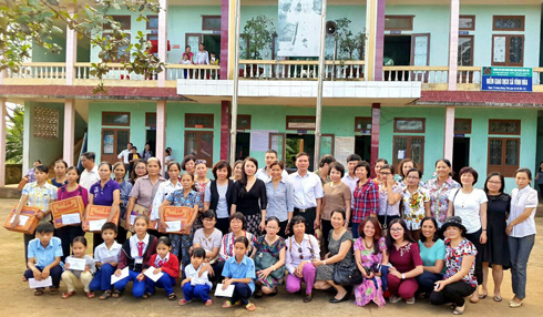 Ban Nữ công – Công đoàn Bộ Ngoại giao đã trao tận tay 90 triệu đồng cho những gia đình, các em học sinh, trường học và hội phụ nữ của hai xã nghèo; cùng với đó là 20 bộ chăn ga, sách truyện mới, quần áo…