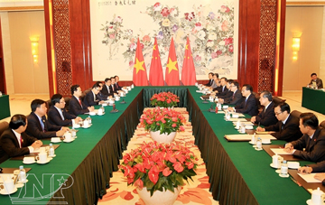 Về phần mình, Việt Nam luôn khẳng định tiếp tục không ngừng củng cố và tăng cường quan hệ láng giềng hữu nghị, hợp tác toàn diện giữa hai Đảng, hai Nhà nước và nhân dân hai nước, đó chính là chính sách lâu dài và nhất quán của Đảng và Nhà nước ta. Chúng ta trước sau như một đã, đang và sẽ tiếp tục thực hiện chính sách nói trên ở tất cả các lĩnh vực, tất cả các cấp, và mong muốn cả hai nước cùng nỗ lực cụ thể hóa, thực hiện đầy đủ các thỏa thuận giữa lãnh đạo cấp cao hai nước, tăng cường hợp tác hiệu quả, thiết thực trên mọi lĩnh vực, giải quyết thỏa đáng các vấn đề còn tồn tại thông qua đàm phán hòa bình trên cơ sở luật pháp quốc tế và các văn kiện liên quan đã ký giữa hai nước, nhằm đưa quan hệ hữu nghị Việt-Trung phát triển một cách ổn định, lành mạnh, vì lợi ích của nhân dân hai nước, vì hòa bình, ổn định và phát triển thịnh vượng của khu vực và thế giới.