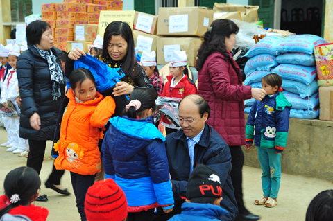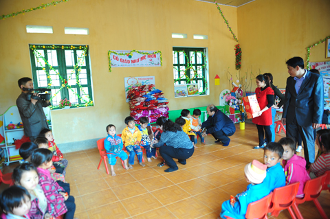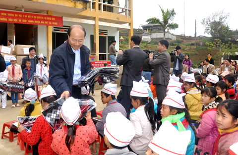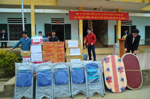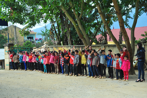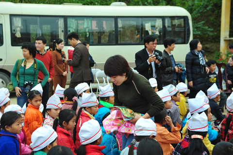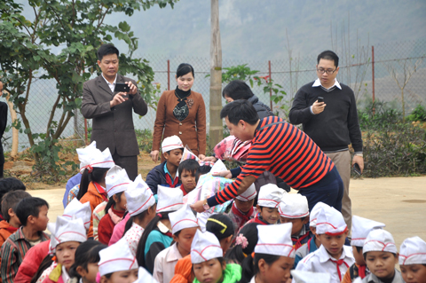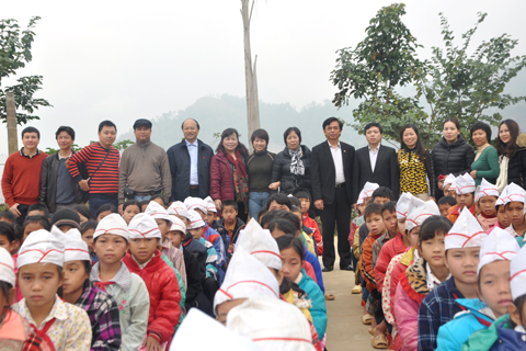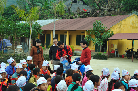 Đoàn công tác đã đến thăm trường Tiểu học xã Giáp Trung, Huyện Bắc Mê (nơi đây có trên 90% các em học sinh là người dân tộc Mông và Dao); đoàn đã tặng quà cho học sinh 3 trường tiểu học, mầm non và trung học cơ sở của xã.